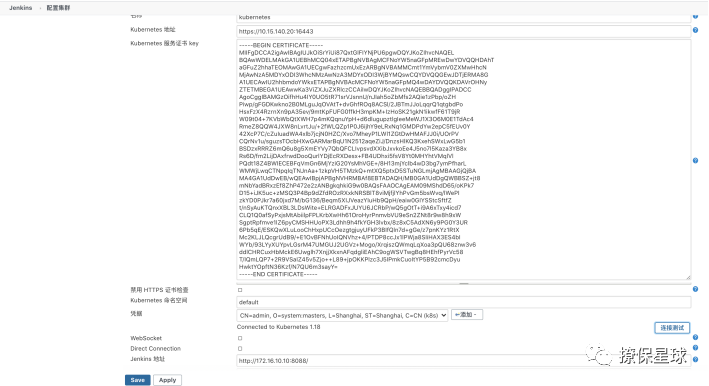 因为 Jenkins 服务器在 kubernetes 集群之外,所以我们准备以下文件才能从外面连接到 kubernetes 集群。