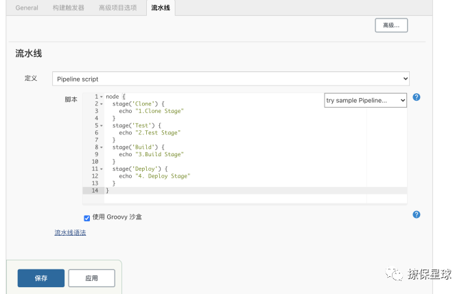 一般我们都推荐在 Jenkins 中直接从源代码控制(SCMD)中直接载入 Jenkinsfile Pipeline 这种方法,但是本次为了更直观的展示,我们在 Web UI 界面中输入脚本