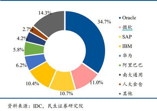 2019年国内传统关系型数据库市场占比 图片来源:民生证券