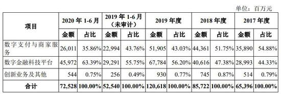 招股书显示,蚂蚁集团的营收主要有两个来源,分别是数字支付与商家服务、数字金融科技平台。