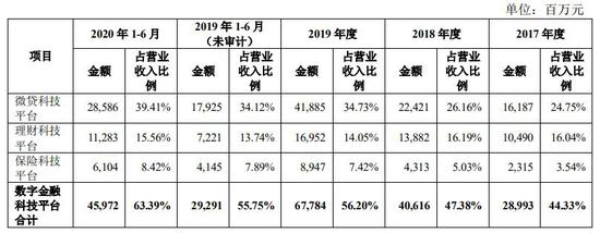 数字金融科技平台收入占比63.39%,占据最大头。这项业务说白了,就是通过促成小微贷款、理财产品以及保险产品的销售,按照销售规模百分比向相关金融机构收取“技术服务费”。