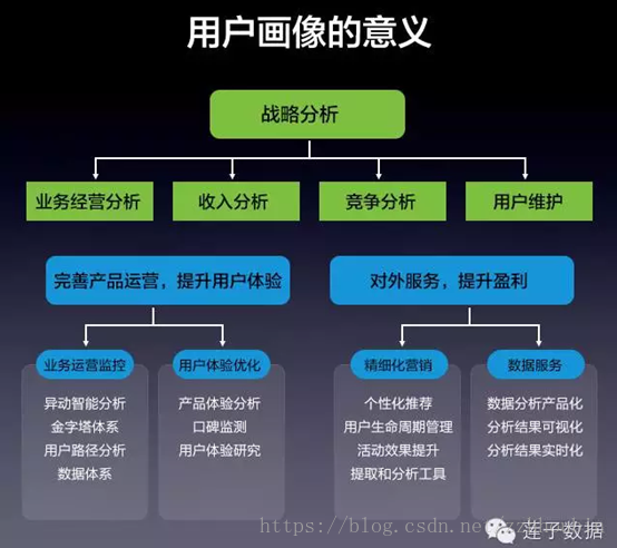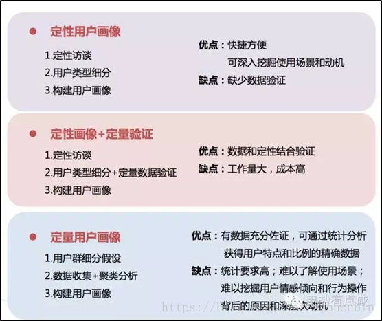 用户画像是指根据用户的属性、用户偏好、生活习惯、用户行为等信息而抽象出来的标签化用户模型。通俗说就是给用户打标签,而标签是通过对用户信息分析而来的高度精炼的特征标识。通过打标签可以利用一些高度概括、容易理解的特征来描述用户,可以让人更容易理解用户,并且可以方便计算机处理。用户画像是对现实世界中用户的建模,用户画像应该包含目标,方式,组织,标准,验证这5个方面。方式:又分为非形式化手段,如使用文字、语言、图像、视频等方式描述人;形式化手段,即使用数据的方式来刻画人物的画像。标准:指的是使用常识、共识、知识体系的渐进过程来刻画人物,认识了解用户。验证:依据侧重说明了用户画像应该来源事实、经得起推理和检验。在产品早期和发展期,会较多地借助用户画像,帮助产品人员理解用户的需求,想象用户使用的场景,产品设计从为所有人做产品变成为三四个人做产品,间接的降低复杂度。在互联网、电商领域用户画像常用来作为精准营销、推荐系统的基础性工作,其作用总体包括:(1)精准营销:根据历史用户特征,分析产品的潜在用户和用户的潜在需求,针对特定群体,利用短信、邮件等方式进行营销。(2)用户统计:根据用户的属性、行为特征对用户进行分类后,统计不同特征下的用户数量、分布;分析不同用户画像群体的分布特征。(3)数据挖掘:以用户画像为基础构建推荐系统、搜索引擎、广告投放系统,提升服务精准度。(4)服务产品:对产品进行用户画像,对产品进行受众分析,更透彻地理解用户使用产品的心理动机和行为习惯,完善产品运营,提升服务质量。(5)行业报告&用户研究:通过用户画像分析可以了解行业动态,比如人群消费习惯、消费偏好分析、不同地域品类消费差异分析根据用户画像的作用可以看出,用户画像的使用场景较多,用户画像可以用来挖掘用户兴趣、偏好、人口统计学特征,主要目的是提升营销精准度、推荐匹配度,终极目的是提升产品服务,起到提升企业利润。用户画像适合于各个产品周期:从新用户的引流到潜在用户的挖掘、从老用户的培养到流失用户的回流等。总结来说,用户画像必须从实际业务场景出发,解决实际的业务问题,之所以进行用户画像,要么是获取新用户,要么是提升用户体验、或者挽回流失用户等具有明确的业务目标。另外关于用户画像数据维度的问题,并不是说数据维度越丰富越好,总之,画像维度的设计同样需要紧跟业务实际情况进行开展。从画像方法来说,可以分为定性画像、定性+定量画像、定量画像
