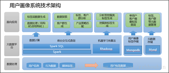 a、数据指标的梳理来源于各个系统日常积累的日志记录系统,通过sqoop导入hdfs,也可以用代码来实现,比如spark的jdbc连接传统数据库进行数据的cache。还有一种方式,可以通过将数据写入本地文件,然后通过sparksql的load或者hive的export等方式导入HDFS。b、通过hive编写UDF 或者hiveql根据业务逻辑拼接ETL,使用户对应上不同的用户标签数据(这里的指标可以理解为每个用户打上了相应的标签),生成相应的源表数据,以便于后续用户画像系统,通过不同的规则进行标签宽表的生成。a、数据平台应用的分布式文件系统为Hadoop的HDFS,因为Hadoop2.0以后,任何的大数据应用都可以通过ResoureManager申请资源,注册服务。比如(sparksubmit、hive)等等。而基于内存的计算框架的出现,就并不选用Hadoop的MapReduce了。当然很多离线处理的业务,很多人还是倾向于使用Hadoop,但是Hadoop封装的函数只有map和Reduce太过单一,而不像spark一类的计算框架有更多封装的函数(可参考博客spark专栏)。可以大大提升开发效率。b、计算的框架选用Spark以及RHadoop,这里Spark的主要用途有两种,一种是对于数据处理与上层应用所指定的规则的数据筛选过滤,(通过Scala编写spark代码提交至sparksubmit)。一种是服务于上层应用的SparkSQL(通过启动spark thriftserver与前台应用进行连接)。RHadoop的应用主要在于对于标签数据的打分,比如利用协同过滤算法等各种推荐算法对数据进行各方面评分。c、MongoDB内存数据的应用主要在于对于单个用户的实时的查询,也是通过对spark数据梳理后的标签宽表进行数据格式转换(json格式)导入mongodb,前台应用可通过连接mongodb进行数据转换,从而进行单个标签的展现。(当然也可将数据转换为Redis中的key value形式,导入Redis集群)d、mysql的作用在于针对上层应用标签规则的存储,以及页面信息的展现。后台的数据宽表是与spark相关联,通过连接mysql随后cache元数据进行filter、select、map、reduce等对元数据信息的整理,再与真实存在于Hdfs的数据进行处理。从刚才的数据整理、数据平台的计算,都已经将服务于上层应用的标签大宽表生成。(用户所对应的各类标签信息)。那么前台根据业务逻辑,勾选不同的标签进行求和、剔除等操作,比如本月流量大于200M用户(标签)+本月消费超过100元用户(标签)进行和的操作,通过前台代码实现sql的拼接,进行客户数目的探索。这里就是通过jdbc的方式连接spark的thriftserver,通过集群进行HDFS上的大宽表的运算求count。(这里要注意一点,很多sql聚合函数以及多表关联join 相当于hadoop的mapreduce的shuffle,很容易造成内存溢出,相关参数调整可参考本博客spark栏目中的配置信息)这样便可以定位相应的客户数量,从而进行客户群、标签的分析,产品的策略匹配从而精准营销。在画像之前需要知道产品的用户特征和用户使用产品的行为等因素,从而从总体上掌握对用户需求创建用户画像不是抽离出典型进行单独标签化的过程,而是要融合边缘环境的相关信息来进行讨论我们的用户标签包含基本特征、社会身份、顾客用户生命周期、类目偏好等等。比如说你怎么判断一个人是不是对女装感兴趣,假设我们有一个类目就是女装,那很好办,如果你购买都是女装,那会认为你这个人对女装比较感兴趣。记录和存储亿级用户的画像,支持和扩展不断增加的维度和偏好,毫秒级的更新,支撑公司个性化推荐、广告投放和精细化营销等产品。© 著作权归作者所有,转载或内容合作请联系作者!