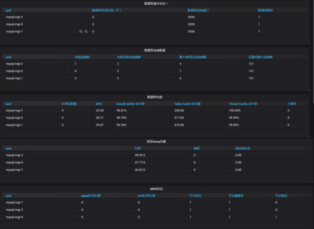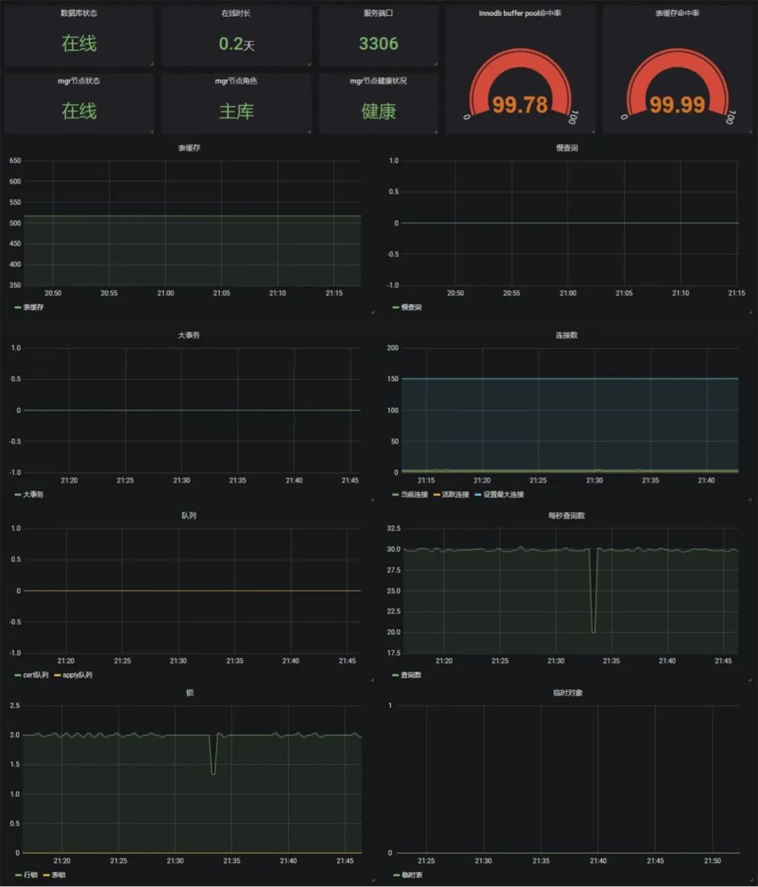 方案不足:导出器可实现单节点和主从复制相关监控项,但对于MGR模式相关监控目前还不能很好地支持。