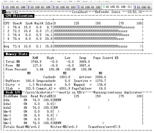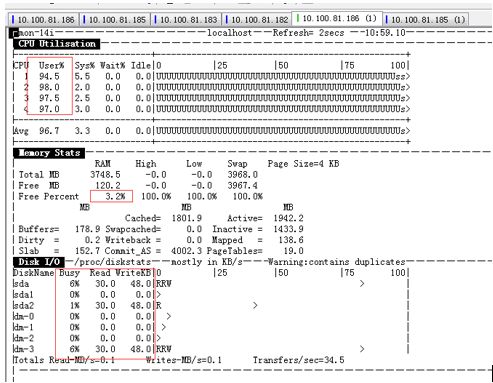 测试场景,在压力测试某银行系统登录退出时,因用户登录需要查询对应的客户相关交易信息等,而需要涉及SQL查询,这时LR 并发100用户时,响应时间5秒多,人工登录发现出现超时错误信息,这时通过top命令监控到CPU使用率超过90%,如下图——