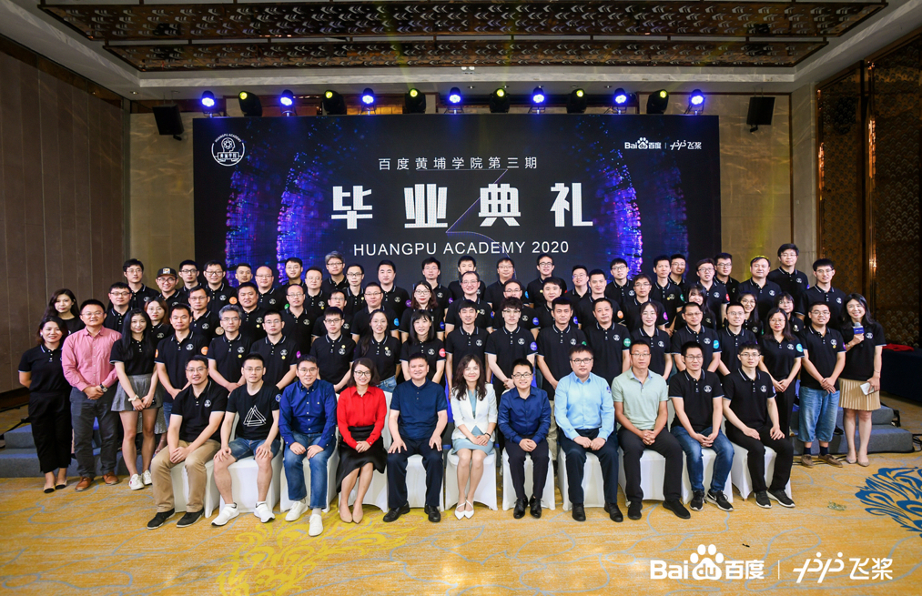 吴甜院长与毕业学员谈到:“首先,从时代背景和机会看,国家提出的新基建将人工智能作为了重要方向之一,人工智能对产业的重要性和价值不断提升;第二,作为人工智能技术研发的基础平台,飞桨一直加强核心技术建设,提升平台的整体能力,并拥有了越来越繁荣的生态;最后,从黄埔学院本期学员的毕业设计看,相比于前两期,与真实业务有了更深度的结合,业务专业性越来越强,场景分散度越来越高,课题没有重复,每个学员都根据自己的业务场景进行创新。对于每一个学员而言,从黄埔学院毕业也是新的开端,飞桨与学员们将共同推动产业智能化加快升级。”(百度集团副总裁、深度学习技术及应用国家工程实验室副主任、黄埔学院院长吴甜致辞)毕业典礼现场,百度飞桨总架构师于佃海,百度深度学习技术平台部高级总监马艳军,百度AI技术生态部总经理刘倩,百度AI平台研发部总监忻舟,百度深度学习技术平台部主任架构师、飞桨产品负责人毕然等,为黄埔学院第三期65位通过毕业答辩的学员颁发了毕业证书,这些学员来自国家卫星气象中心、上汽通用汽车、宝钢湛江钢铁、京东方、成都国铁电气设备、中国工商银行等企业,遍布工业、农业、金融、交通、电力等数十个行业。学员项目包括智能视觉质检、安全隐患检测、遥感数据分析、交通动态规划、智能客服、营销文案生成等广泛的场景应用。今年受疫情影响,黄埔学院第三期的课程安排较往期有所不同,特设线上“预科班”。所有通过审核的“预科班”学员先进行线上预科学习;随后再按照学员学习进度以及项目开题报告等情况综合评定,遴选进入为期三个月的正式课程。期间,所有学员们通过学习与实践,结合各自领域实际业务进行研究探索。例如,能源领域中,中国石油规划总院基于深度学习技术对盐体进行识别研究;金融服务领域中,太平洋保险研究印章内容识别方法等。现场,来自中国商用飞机有限责任公司的优秀学员代表在回顾学习历程时讲到:“通过黄埔学院,传统行业与人工智能产生了新的火花。在技术专家的指导下,我们使用了百度飞桨的PaddleSeg、PaddleX等AI开发工具,感受到AI开发的便捷。商用飞机领域的AI需求正大量涌现,希望能和百度一起,努力推进深度学习框架助力国产飞机技术进步,实现技术自主可控,打造国货之光。” 在高效输送AI人才的背后,不可或缺的是“高配”师资队伍,以及“硬核”的技术支持。毕业典礼上,马艳军在课程整体总结中讲到,百度黄埔学院配备了科学家和顶级AI架构师授课,还首次创新性地设立了“三师制”,即授课主讲老师、项目落地指导专家、以及助教,三位一体全程跟进,指导学习和学员项目落地。中国首个开源开放、技术领先、功能完备的产业级深度学习平台——飞桨则配套给予了黄埔学院学员们全方位的技术开发支持。截至目前飞桨已经凝聚了210多万开发者;基于飞桨开发的模型数量29.5万个,服务超过9万家企业。飞桨获得了2019年度中国电子学会科学技术奖科技进步一等奖,近日的中国国际服务贸易交易会中获评“科技创新服务示范案例”称号等,受到了越来越多的权威认可。人能尽其才,物能尽其用,则为富强之大经。随着AI进入到大规模产业落地及商业化应用阶段,世界新一轮科技革命和产业变革加速演进,趋势相契。而百度黄埔学院为各行各业输出的首席AI架构师,作为可应对该演进与趋势的高端AI人才,正成为企业核心竞争力,更推动着中国技术革命与产业智能化发展持续向前全速前进。