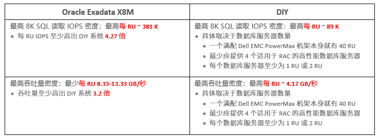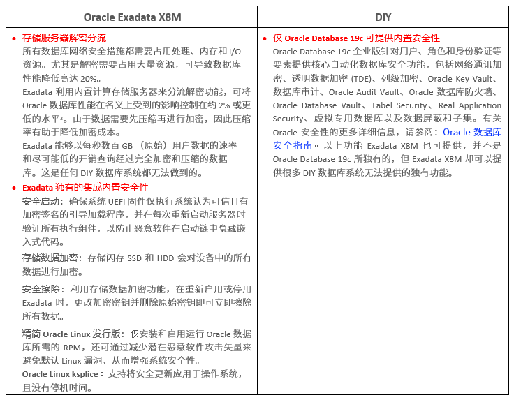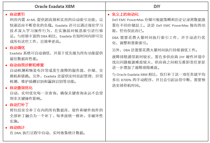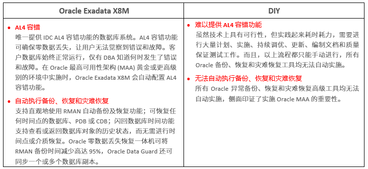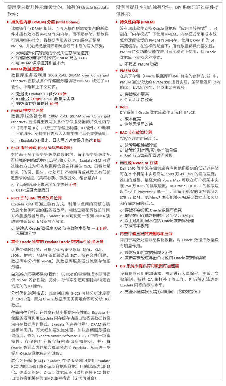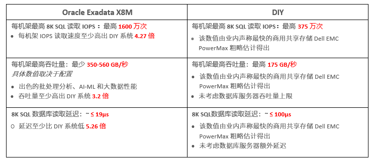 o DIY 系统不具备 Exadata X8M 所拥有的 70 多项独有功能