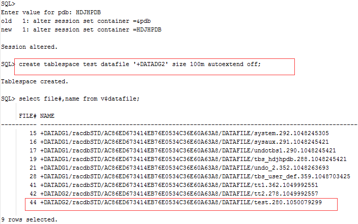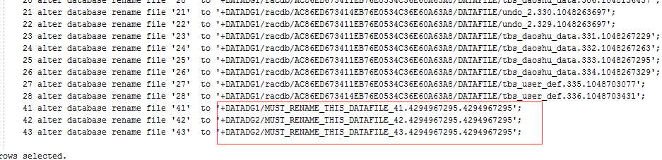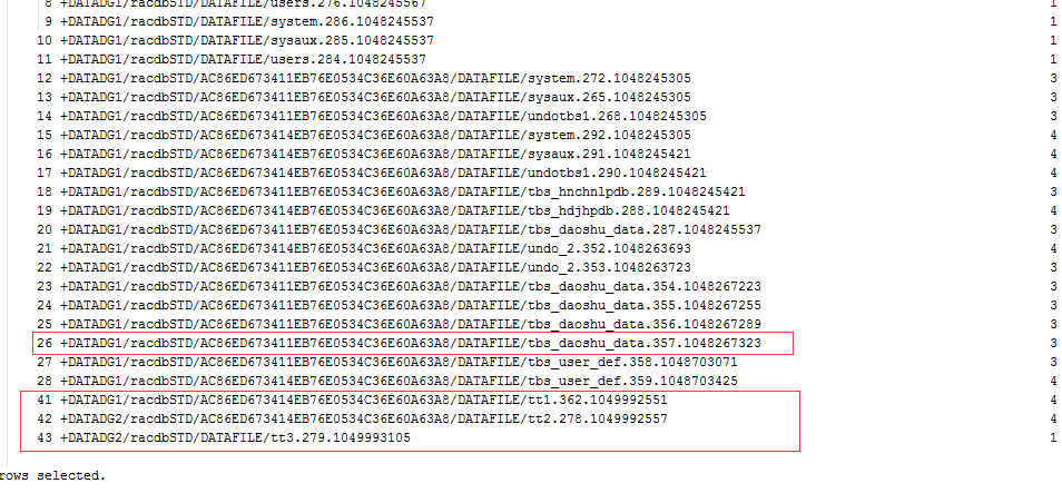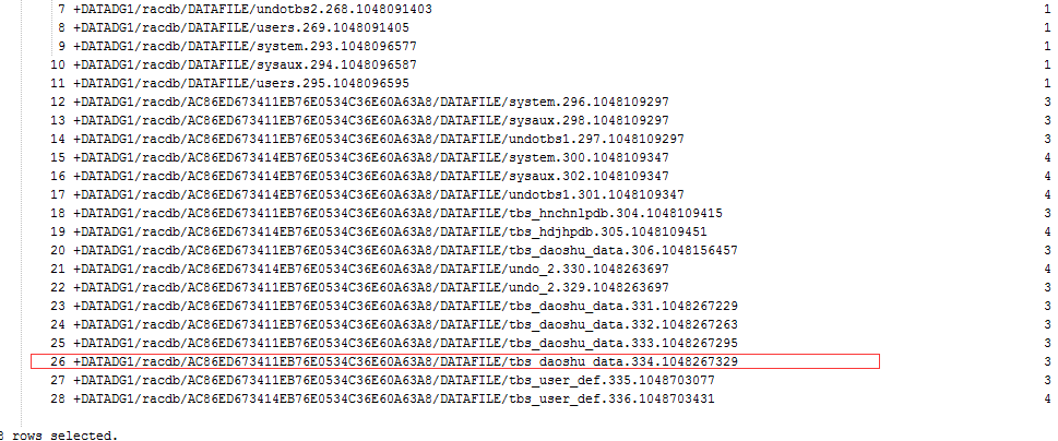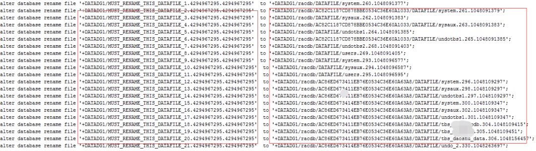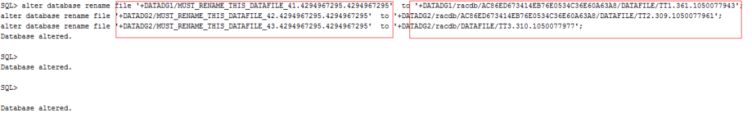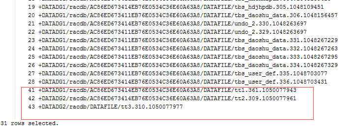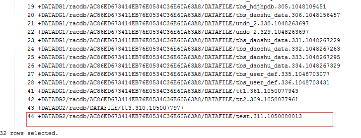 11、restore出来的数据文件并不是控制文件中的路径,在主库对应的目录,我们需要asmcmd进入ASM中把文件详细路径找出来,然后做rename。
