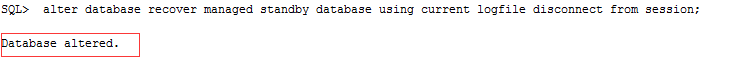 13、恢复完成后,将数据库启动至open,并开启实时同步成功。注意:在recover之后,mount状态下,redofile、standbyredofile及tempfile文件路径均是不正确的,但不需要额外处理,只要将数据库启动至open,数据库会自动将其修改成正确路径。另外如果发现其他节点的standbyredo file路径错误的时候,只要在路径错误的节点开启实时同步就自动恢复正常。