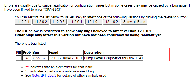 4、在确认数据库参数及其他tns等配置均正常的情况下,怀疑触发BUG。在MOS上搜了一把,12C之前有ORA-01193报错的BUG,但没有发现19C类似报错的文章,而且12C及之前的BUG现象不一致。好吧,既然新建数据文件无法自动同步过来,那我们还是使用基于scn增量备份恢复的方式把故障解决了。