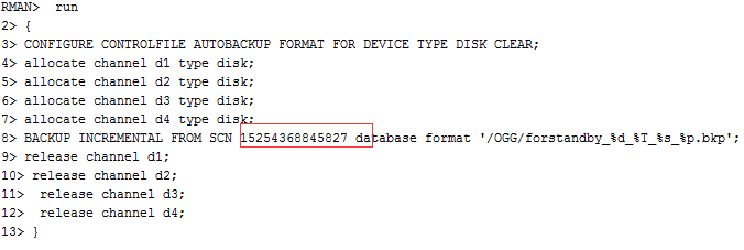 在主库创建standbycontrolfile,并基于备库查询的SCN在主库做增量备份。