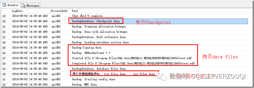 至此,我们已经明白了,在完整备份文件里,它虽然没有包含所有的事务日志,但在完整备份期间,拷贝日志的动作一直存在,按照SQL Server的说法,完整备份选择性的保存了数据库必需的事务日志。