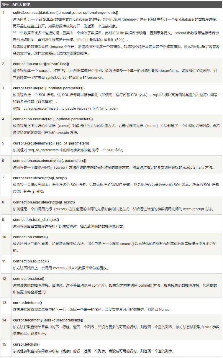 函数连接数据库,返回一个Connection对象,我们就是通过这个对象与数据库进行交互。数据库文件的格式是filename.db