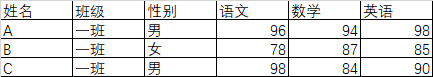 sql_text_2 = "INSERT INTO scores VALUES('A', '一班', '男', 96, 94, 98)"