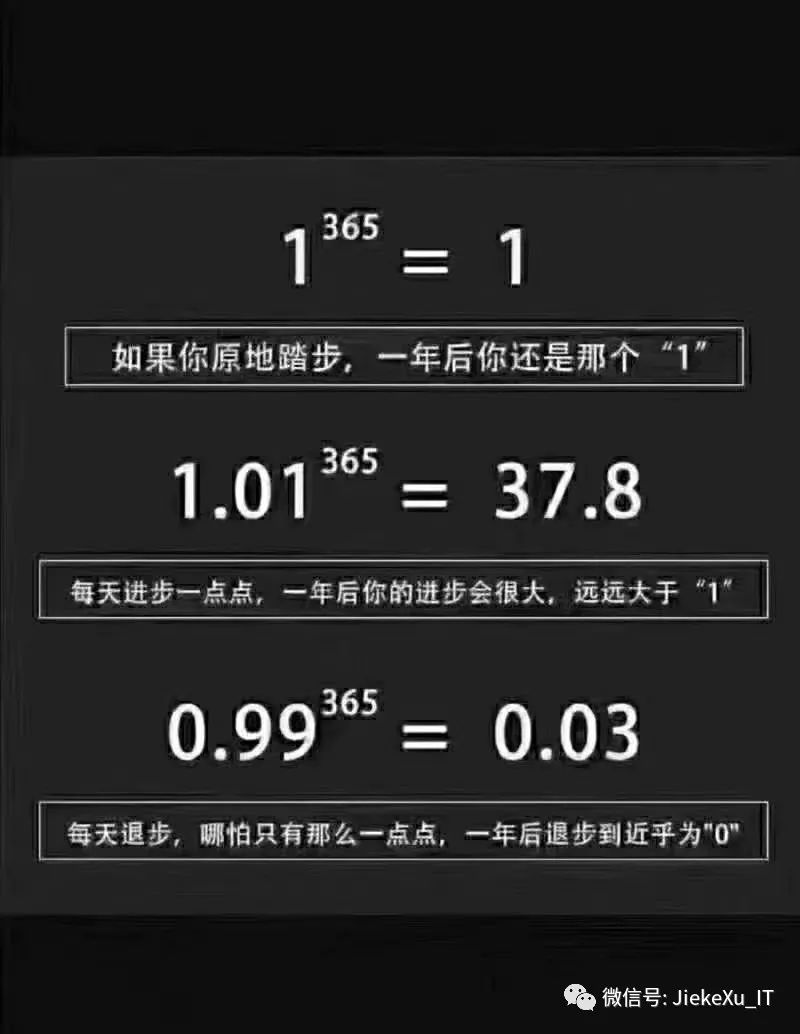 每天进步一点,一年后的进步将会很大,远远大于 “1”;每天退步,即使退步一点点,一年后几乎退步为 "0"。每天加油,让我们一起努力做更好的自己,今天就到这里了,祝小伙伴们新的一天开心愉快,工作顺利!
