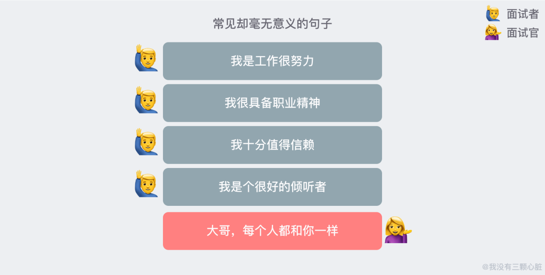 上面提到的那些例子都是在说面试,但其实这些对于书面的阐述同样有效。