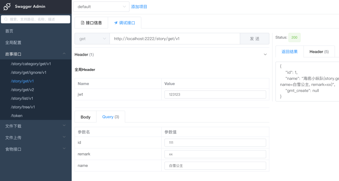 同时,swagger-admin重新组织了文档界面以及调试界面,使用起来要比之前方便许多。