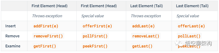 插入操作的后一种形式专门设计用于容量限制的Deque实现,大多数实现中,插入操作不能失败,所以可以用插入操作的后一种形式。