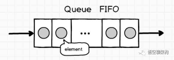,大家可以把我想象成一个数组,元素从我的一头进入、从另外一头出去,称为FIFO原则(先进先出原则)。