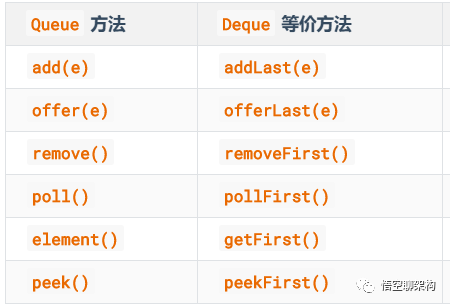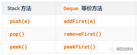 Stack(栈)的方法正好等同于Deque的如下方法: