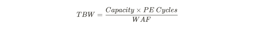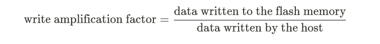 众所周知,闪存颗粒存在擦写次数的限制,所以在衡量SSD寿命时,通常会以TBW(或DWPD)为衡量依据。写放大导致了闪存颗粒擦写次数的“放大”,进一步降低寿命。有如下计算公式: