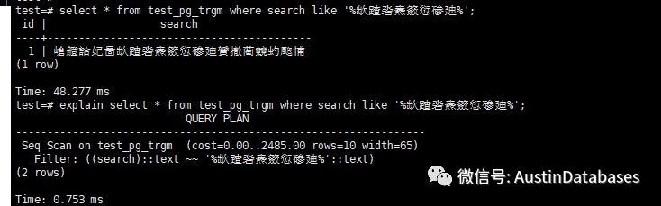 功能很简单的就是模糊查询,类似 select * from table where column1 like ‘%PG牛逼%’;然后走一个靠谱的索引的查询,ORACLE 打死他都不行,当然可以走全文索引,那MYSQL, SQL SERVER 人家也不干,人家也有这功能。
