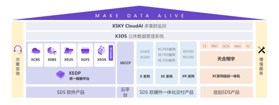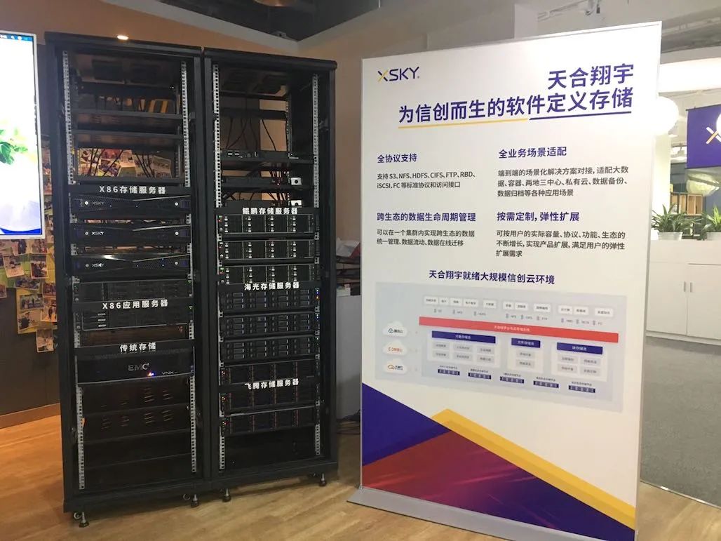 鉴于上述背景,信创生态的数据存储如何破局?软件定义存储市场头部企业XSKY在日前首次向外界公布了其信创战略和布局,并将首款信创产品 “天合翔宇”初步投入用户端生产运行。