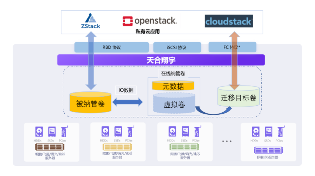 天合翔宇分布式存储系统基于信创生态的CPU、操作系统以及应用进行了深度的适配及优化,在稳定性、性能、可靠性、易用性等方面能够满足复杂的企业级应用需求,实现自主可控,为大规模信创云环境提供了可靠的存储基础架构支撑。