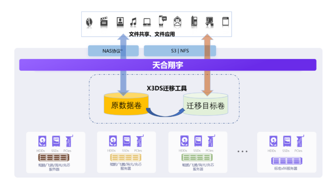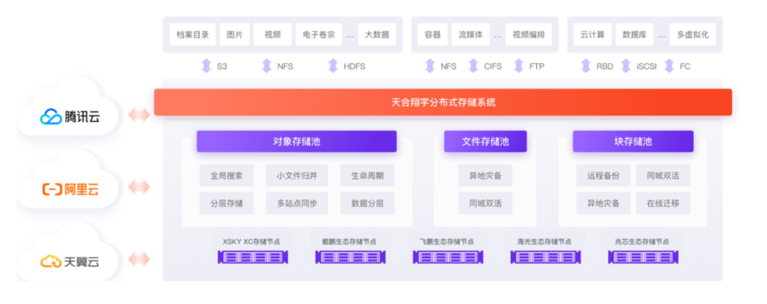 针对非结构化数据,天合翔宇提供X3DS立体数据管理系统,支持非结构化数据的复制、迁移、备份、归档功能;支持跨厂商的文件和对象存储之间数据相互移动,支持跨云的数据上云和下云。