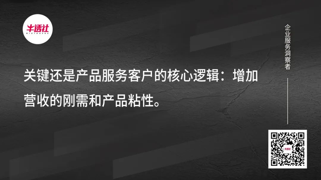 其中有一对某领域内的竞争对手在对抗4年后终于开始选择错位竞争。虽然是好事儿我也不提名字了,我发现他们逐渐各自深耕自己有深刻理解的行业,各做各事,把客户服务得爽爽的,不断到来的增购给公司带来毛利和信心。我期待,也认为,错位竞争才是 SaaS 企业未来最合理的竞争策略。