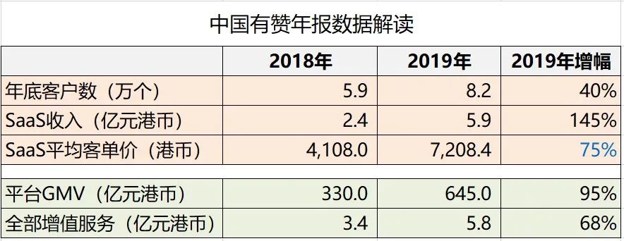 在 SaaS 产品方面,Shopify 于2014年推出了面向大客户的“Shopify Plus”(提供更多人工服务、用脚本自定义价格模型、工作流等),已吸引雀巢、联合利华等大品牌购买。关于提高 NDR(Net Dollar Retention,含增购的金额续费率)的必要性,这个在《SaaS 创业路线图(95)东方 SaaS 之路:小微向左,中大向右》中有更详尽描述。香港上市公司「中国有赞」的产品及市场格局与 Shopify 接近。根据有赞财报,我发现有赞也在设法扩大“增值业务”;同时,为了提高客单价,除了主打产品“有赞微商城”,也针对零售、连锁等业态以及美业、教育行业提供解决方案式 SaaS 产品。从公开的年报数据也能看出,其2019年 SaaS 订阅收入增幅(145%)远大于客户数增幅(40%),平均客单价大幅增加。同时,随着 GMV 的高速增长,增值业务(包括交易费、延伸服务及其它)也在增加,但占总营收的比例还未超过50%,说明有赞与 Shopify 所处阶段不同。2019年底与一位老牌海外基金的投资专家交流,了解到,由于“通用 SaaS 赛道”基本投完,他们也在看很多行业 SaaS 企业,近年在海内外投资的也主要是这个方向。这半年我与领健的管理层交流得比较多,经他们同意,下面聊一个行业 SaaS 公司在中国的成功模式。「领健」总部位于上海,在口腔诊所 SaaS 市场处于绝对领先的地位。据介绍,中国约有10万家口腔诊所(属于我说的橄榄型市场),领健已经完成30%的市场占有率。其中头部的100个品牌,已经有80家使用了领健的 SaaS 服务。领健 SaaS 业务遇到的挑战主要是客单价太低:口腔诊所利润不错但为信息化的支付意愿不强,一个诊所一年只支付几千元。这么低的价格,需要销售上门推动签约、还需要上门实施,因此 SaaS 毛利不高。这些真的就是中国 SaaS 企业用 SaaS 1.0 的模式玩不下去的原因。好在领健找到了发展路径 —— 领健商城,为口腔诊所提供的上万种医疗耗材和设备。这正满足大量诊所的采购需求:帮助诊所在采购时拉平各级供应商的信息不透明和层级差价,并根据物品成交量提供采购补货周期策略和库存预警策略。我在新书《SaaS 创业路线图》中讲到:“有数据增值价值的才是商业 SaaS,只靠工具 SaaS 的客情多卖实物产品的不是。”可以看到,领健提供给诊所的商城服务与 SaaS 工具本身是紧密相关的:从库存预警、全网价格对比,到订单物流、安装到客户的嘴里、未来提醒到期检查及更换,都能数字化跟踪和管理。据了解,领健的 SaaS 业务和商城业务近两年都在高速发展。除了诊所 SaaS,我也与一位家政 SaaS 创始人交流过。两年前聊的时候,我还觉得这个行业客户支付能力弱、信息化需求低,SaaS 企业无法生存。没想到今年再聊起来,发现他们做了很多给家政公司的增值服务,公司已经能盈亏持平了。上个月我和一位「慧算账」的投资人长谈过两次。慧算账通过 SaaS+财税服务模式,为中小微企业提供代记账等服务,看起来更像一个巨型代记账公司。这位投资人的一句话让我对“Service(服务)”的理解突然拔高了一个层次。她说,“Software as a Service”,SaaS 是提供服务,这与人工提供的服务不都是“服务”吗?关键是,能否给客户一个端到端的服务?也就是说,软件或者人工服务,这都只是形式。形式不重要,关键是目的 —— 给客户的服务完整、闭环、有价值!回到慧算账的例子。是的,他们养了大批记账会计,但随着 OCR、RPA、电子发票这些技术和规范的成熟,机器会逐渐替代人,这就是慧算账相对传统代记账公司的优势。十、SaaS 2.0 与 SaaS 1.0 的核心区别SaaS 1.0 的企业,例如 ServiceNow、Docusign、Workday,他们历年收入中的订阅比例都保持、或不断提高到90%左右。这里的逻辑是,机器提供的服务边际成本极低。花费1亿美元研发的产品,服务10万个客户分摊的成本,远低于服务1万个客户。相对于几百、几千美元/年的 SaaS“人·年”服务费,客户企业每增加一个人头,SaaS 企业需要增加的服务器、带宽成本可能只有十几美元。而人工费用则不同。如果一个 SaaS 产品的咨询(或实施、定制开发)费用占比1/2,意味着这一半的成本并不会随着客户数量的增加有多少下降空间。相反,由于咨询顾问、分析师、实施顾问、CSM(客户成功经理)、项目经理的培养需要1~3年的周期,这会成为 SaaS 公司增速的铁瓶颈。所以 SaaS 1.0 的逻辑,用机器提供服务,不断降低机器服务的成本,这是非常合理的。但这是低竞争格局下的商业模式,而30年来,中国的 IT 服务市场一直是高度同质化竞争市场。具体到一个领域的 IT 产品提供商,向上面临国际厂商 Oracle、SAP、微软巨大品牌势能的压力,向下又有小软件作坊的低价及无限承诺定制开发的竞争,纯机器服务的 SaaS 1.0 模式本身护城河太低,从2015年以来举步维艰。于是我们勇于拼搏的 SaaS 创业者闯出了中国的 SaaS 2.0,这包括本文提到的所有中国 SaaS 企业:软素、有赞、兑吧、小鹅通、领健、慧算账、纷享销客、谷器数据、某 SRM 公司、某家政 SaaS 企业......中国 SaaS 2.0 是对美国舶来品 SaaS 1.0 的版本升级。其实这也是西方成功商业模式 Copy to China 常见的情景,并没多特别。改革开放40多年来,从来都是如此:先学习,再调适。