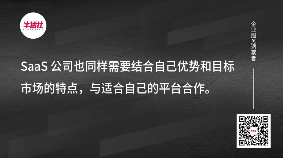 既然能叫做“升级版”,SaaS 2.0 的机会有哪些新特点?她有哪些发展趋势?上文提到的医药行业的改革,带来的合规需求,就是医药 CRM 的刚需。有一次与「谷器数据」的 CEO 交流,他们主打汽车行业的 SaaS MES 产品(面向制造企业车间执行层的生产信息化管理系统)。听起来是一个纯内部管理工具对吧?这个需求来自给其订单的买方,叫做“追溯”。简而言之,整车厂给一级供应商下订单;一级供应商的部件中也有需要外购的,再给二级供应商下订单;二级再给三级下订单......环环相扣。一旦下游(例如整车厂)发现有的零件出现质量问题,就需要上游供应商确定出问题的批次,并可能发生召回。如果没有 MES、精确追溯和批次追溯无法进行,那谁也不敢把订单给这个供应商。这和 CRM 的情况类似,如果没有甲方强制的合规要求,好多工厂也就用 Excel、甚至纸卡代替 MES 了;就像大部分To B 销售公司还在用电子表格管理客户和商机。我的新书《SaaS 创业路线图》中提到,2018年初,我和崔牛会的创始人大崔交流,就不谋而合地聊到“商业 SaaS”的概念。小门店需要获得新客户、连锁门店希望把老客户的圈子转起来;当前阶段,中国的大、小公司的急迫需求莫不如此。客户就是要更快的马车,你做了个汽车,人家不要啊!道路不允许、交通规则还是为马车设计的......国内在全球主板 IPO 的 SaaS 公司仅有三家:有赞、微盟、兑吧(少量 SaaS 业务),都是帮客户挣钱的。前面讲到小鹅通的产品,我作为在线课程输出者,用小鹅通远远不不止是把它当做视频课、直播课、专栏课、会员课的载体,更重要的是一个微信生态的营销工具:新课程宣传在微信公众号发、在微信视频号下面带链接、在微信群和朋友圈转发;小鹅通也擅长支持拼团、优惠、裂变海报等十多种营销玩法......而从小鹅通自己的角度,100万个知识店铺、1100万课程......估计每天都有在微信生态里亿级以上的传播。这些传播是宣传老师们自己的课程,也顺便宣传了小鹅通的产品、教育了微信里的十几亿用户。除了腾讯生态(腾讯云、微信及企业微信),SaaS 的另外几个重要生态是阿里云+钉钉+钉钉 ISV、头条系飞书+飞书 ISV,加上华为 Welink 的生态。阿里的 To B 商业操作系统最成熟,包括钉钉作为产品也最早出现;腾讯的微信是所有 SaaS-to-B-to-C 公司(用 SaaS 产品的客户直接服务消费者,例如教育机构)的潜在大杀器,有赞与小鹅通就是例子;头条系掌握了移动互联网时代的最强推荐引擎,这是搜索引擎、微信生态之后的必然王者。我与飞书的高层交流,发现他们的产品解决的问题更场景化,果然很有互联网思维;华为 Welink 背靠的是中国最有底蕴的科技公司,其 To B 的组织能力也最为成熟。我15年前在华为“业务与软件”产品线工作时,就领略到大公司建立生态的成熟操作框架。To B 是个碎片化市场,这4家平台如果坚持投入,都会在自己擅长的领域里占有一片天地。而 SaaS 公司也同样需要结合自己优势和目标市场的特点,与适合自己的平台合作。2019年,阿里和腾讯先后推出了“SaaS 加速器”。其中阿里 SaaS 加速器是阿里云 SaaS 生态的商业和技术平台,为阿里云的“被集成”提供工具与售卖通路,是阿里云 SaaS 生态战略的具体落地体现。(来自百度百科)上图来自其官网。看来阿里的加速器更偏常年和线上的,在技术和市场上给 ISV 支持。我也侧面了解到有少量 SaaS 公司受到邀请参与和 AI 公司混合的训练营。作为腾讯 SaaS 加速器导师,我对腾讯加速器的情况了解多一些。2019年7月首期加速器做了海选,复试后有40家 SaaS 企业入围,包括 EC、纷享销客、小满科技、加推、Udesk、肯耐珂萨、外勤365、易企秀、法大大、趣学车、超级导购、理财网、明道云、道一云、分贝通、观麦科技、魔学院、三体云动等知名 SaaS 公司。腾讯 SaaS 加速器在疫情前每月底都有线下培训活动,90%以上都是 CEO 亲自参加。难得有这么多 SaaS 公司的 CEO定期聚在一起,除了听课和交换商业认知,也在产品、市场方面找到了很多合作点。目前腾讯 SaaS 加速器二期的报名已经结束,预计很快会开始复试。互联网本身就是开放的地方。如果 SaaS 公司做的产品没有 Open API,就丧失了互联网产品连接的特性。云计算分为 IaaS、PaaS、SaaS 三层。三层中,美国的 SaaS 部分营收最大,而在中国 IaaS(阿里云、腾讯云、华为云等)部分的营收比 SaaS 大得多。腾讯云在2019年9月建立了“SaaS 技术联盟”,邀请 SaaS 公司一起制定 iPaaS 标准。他们把 iPaaS 比喻为各个本不相连的“SaaS 池塘”间的统一直径和颜色的水管,以实现多方统一。可以想象,各家 SaaS 公司之间的对接工作量将会大大减轻。其实,我自己对 iPaaS 还有更高的期望:iPaaS 作为“排式电插座”,各家 SaaS 产品都直接用标准 API 通过“电插头”插到 iPaaS 上即可;这样 SaaS 产品之间的对接都可以省去了。以前我对多家 SaaS 产品服务同一个企业的架构是这样考虑的: