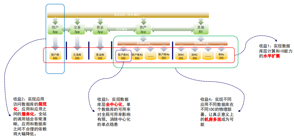 这样我们可以做到把传统金融的数据库承担的大量的业务逻辑和架构属性从数据库这个层面剥离出来,数据库层承担的角色就会更加简单和单一,以至降低整个运维层面的风险和难度。
