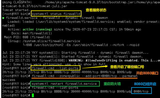 开端口命令:firewall-cmd --zone=public --add-port=80/tcp --permanent
