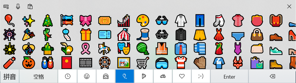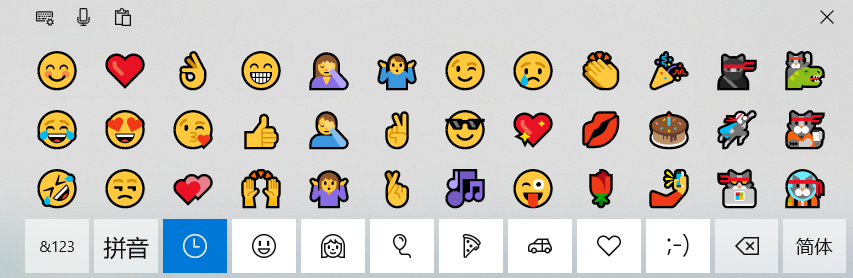 触控键盘更符合微软更新的 Fluent Design 原则,它还配备了一个内嵌式搜索框,并支持动画 GIF、表情等。从截图来看,启用触摸键盘之后,拼音键盘有很多种显示形式,你可以直接选取常用的数学公式符号,也可以只要拼音字母全键盘,完全根据自己的使用需求来设定就好。另外,触控键盘里面有很多表情可以直接使用,朋友之间斗图又有了新选择。