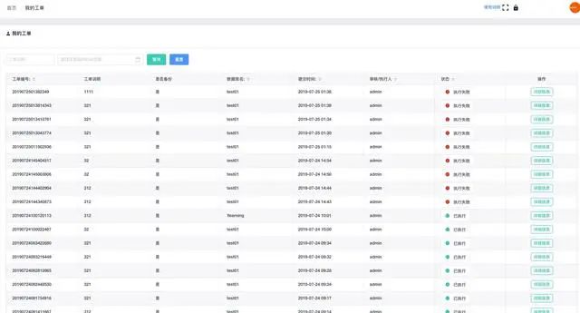 2.管理员收到消息后在审核工单页面审核该工单请求并执行/驳回 对应工单