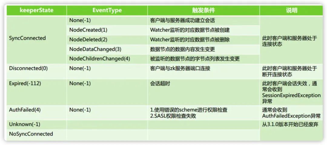 不是的。ZooKeeper 的 watch 机制目前只能推送节点变更信息,比如节点内容数据变更,监听节点下子节点列表变更等,具体如下图: