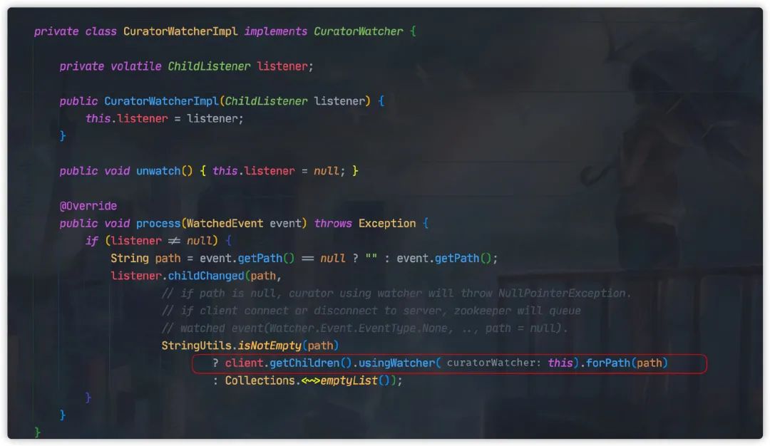 这一点我们可以具体看下 Dubbo 的源码,位于 CuratorZookeeperClient