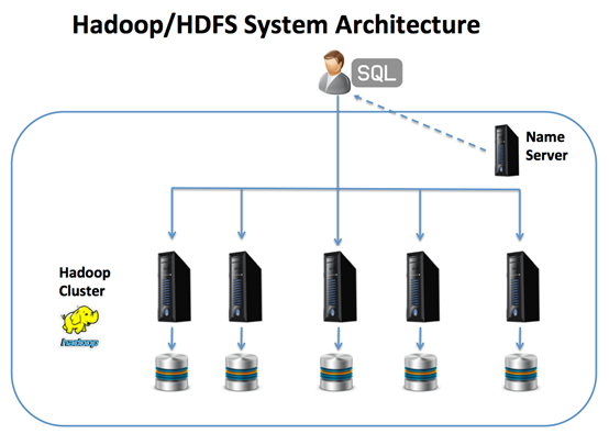 下图说明了Hadoop HDFS平台中的关键组件。它说明了如何配置名称节点以记录跨集群分布数据的物理位置。