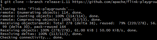 git clone --branch release-1.11 https://github.com/apache/flink-playgrounds.git