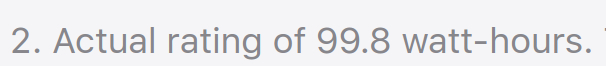 你可能会问,100 瓦时的电池有什么问题,比如免责声明中说它实际上可能会少 0.2 瓦时?