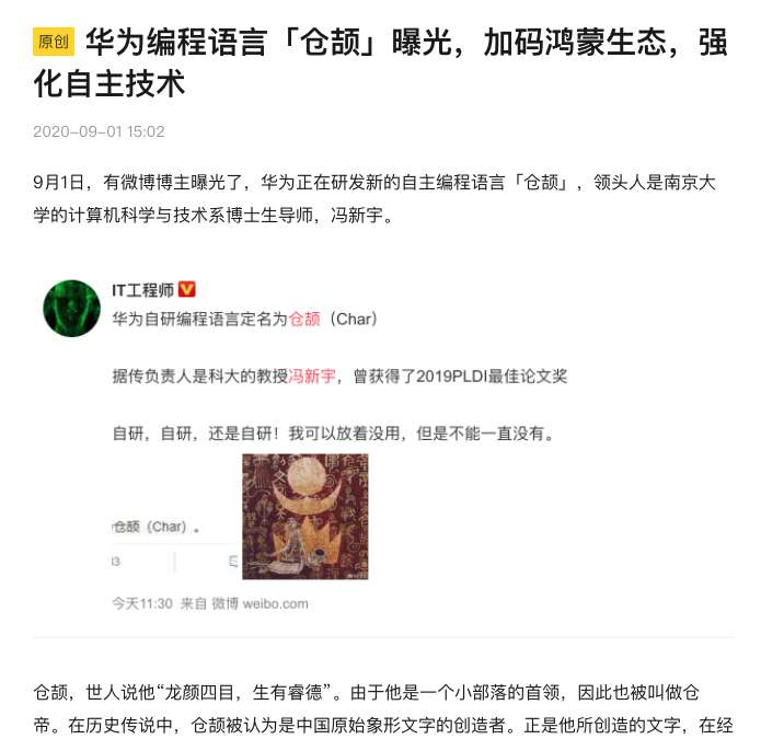 又一好消息,华为即将发布国产“仓颉”编程语言,补齐软件核心短板。华为将自主编程语言命名为“仓颉”是有讲究的。