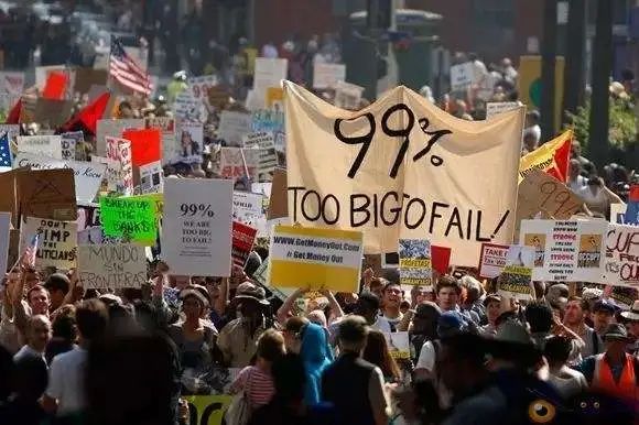 比如,在2011年9月17日美国的宪法日这一天,数千名美国群众,跑到美国的金融中心——纽约曼哈顿的华尔街上,拉起大旗,高喊口号:“我们是美国99%的民众,但国家财富却被那1%的人所占据。”