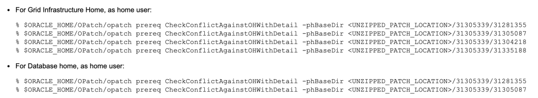 补丁包权限检查、opatch版本检查、补丁冲突检查