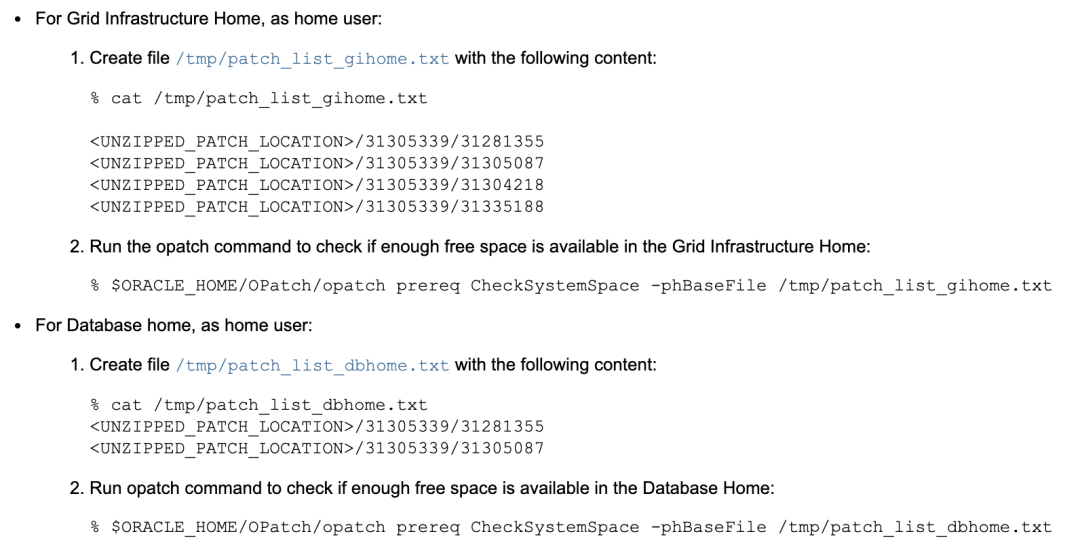 oracle打补丁最常见原因为bug修复或安全迎检漏洞修复需要打到最新的补丁版本。下文的经验之谈是基于rac环境,19c版本的最新补丁集的过程分享。