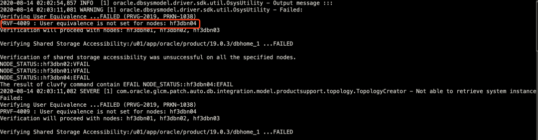 >>>GI各个节点依次执行打补丁命令 # /u01/app/19.0.3/grid/OPatch/opatchauto apply /u01/software/patch2020/31305339 -oh u01/app/19.0.3/grid >>>DB各个节点依次执行打补丁命令 #/u01/app/oracle/product/19.0.3/dbhome_1/OPatch/opatchauto apply u01/software/patch2020/31305339 -oh /u01/app/oracle/product/19.0.3/dbhome_1 |