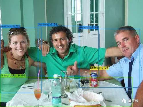 此外也能看见,YOLO不仅能检测行人和动物,类似于餐桌和瓶子这样的目标物体也能检测出来。
