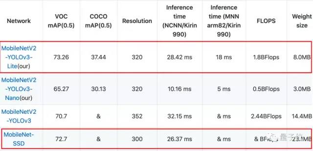 不仅如此,这个全平台通用的MobileNet-YOLOv3,体积和精度都要优于MobileNet-SSD。