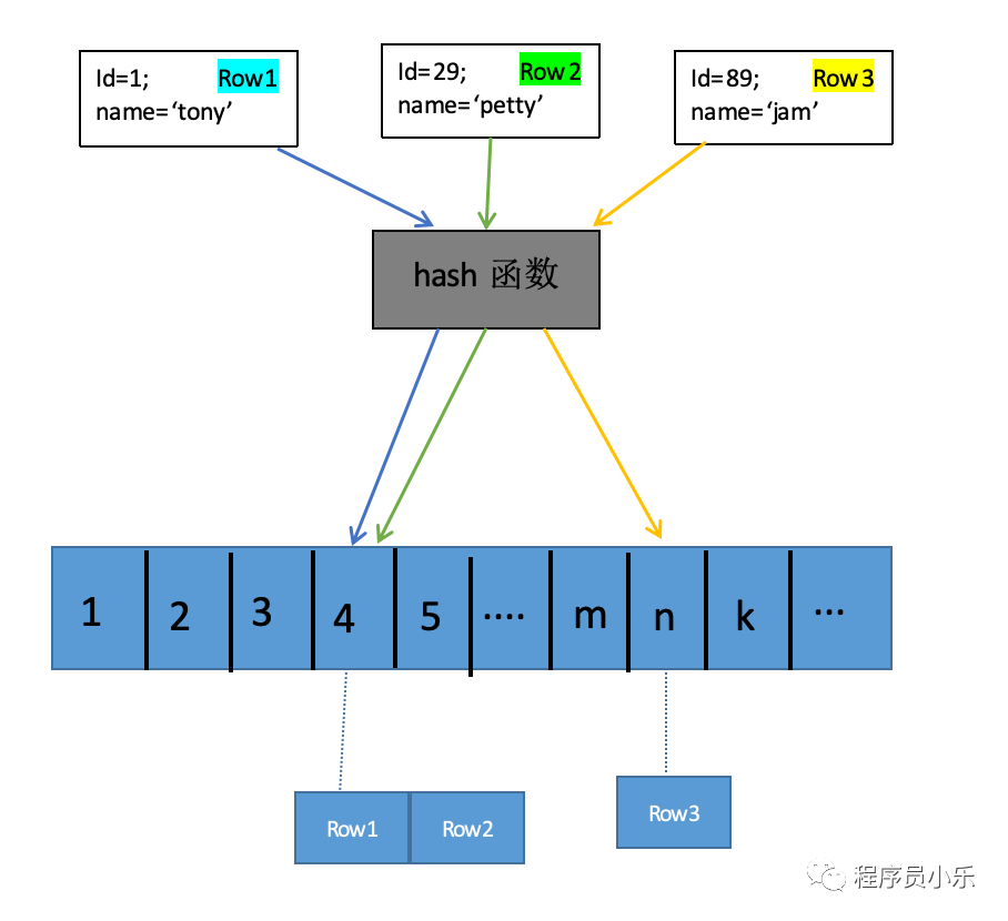 哈希表哈希表是通过键值对(key-value)存储数据的索引实现方式,可以将哈希表想象成是一个数组,将索引通过哈希函数计算得到该行数据在数组中的位置,然后将数据存到数组中,容易发现一个问题,如果两个索引通过哈希函数计算后得到的数组位置相同要怎么办?在这里,数组的每个value都是一个链表,链表上的每个元素都是一个数据,新数据直接添加到链表尾部。