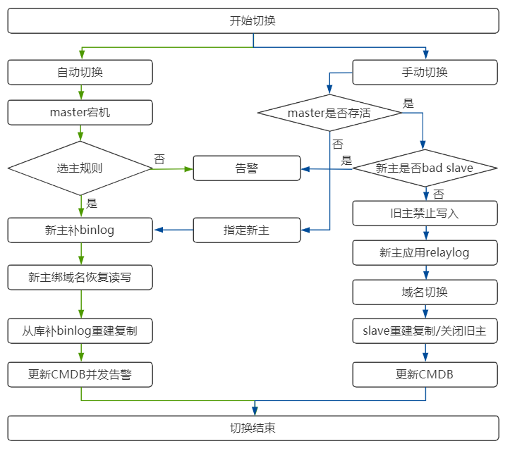 除了对主库支持故障切换外,也具备对从库故障切换的能力。在从库故障宕机时,通过检测故障,再操作域名的方式实现Slave的高可用。